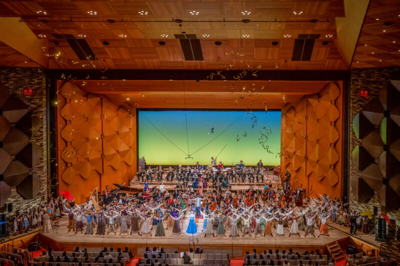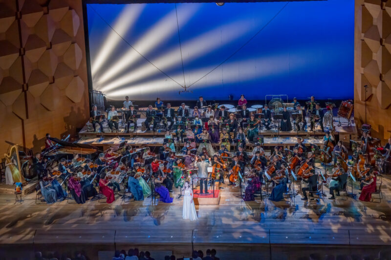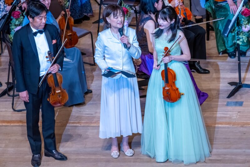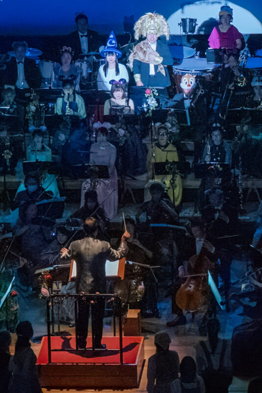 第40回の節目を記念し「クラシック×ミュージカル」をテーマに華やかな演奏会を企画開催しました。当日は1,398人の来場者を迎え、第一部では菊池団長念願の《ウエストサイド・ストーリー》を、第二部では元劇団四季の花岡久子氏を迎えミュージカルの名曲の数々をお届けし、多くの方から好評をいただきました。演出面では、お洒落な衣装や楽団美術部員が手がけた舞台装飾が彩りを添え、司会進行や照明、キャノン・ショットによる演出で会場を盛り上げました。また、倉敷児童合唱団との共演では、子どもたちのいきいきとした歌声と質の高い演技が会場を和やかな雰囲気で包み、心に残る感動的なステージとなりました。